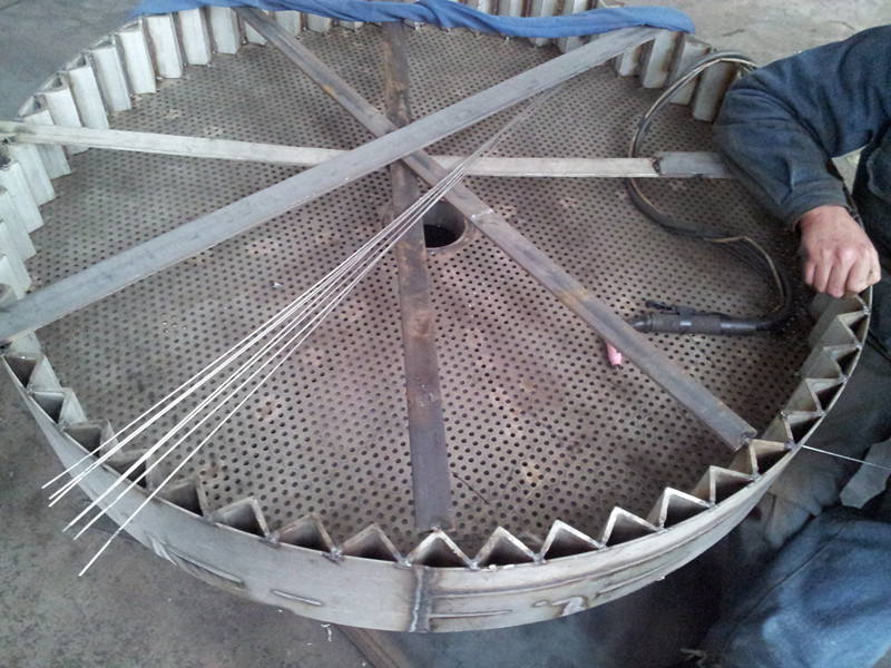 底部強(qiáng)化器設(shè)計(jì)獨(dú)特,攪拌齒為菱形,其流線性能使風(fēng)阻達(dá)到最小,設(shè)置在圓錐形料斗內(nèi),分動(dòng)刀和定刀,粉碎效果顯著,使下落的結(jié)塊物料迅速粉碎為適合氣流干燥的粉粒料,攪拌的另一個(gè)主要作用是分散物料,加大了與料斗下面進(jìn)來(lái)的高速熱風(fēng)的接觸面積,于是料斗區(qū)形成了一個(gè)強(qiáng)烈傳熱傳質(zhì)的流化床,大部分濕分在料斗區(qū)被干燥。隨著干燥的進(jìn)行,變輕變細(xì)的干料受氣流作用明顯,與氣流一起上升并進(jìn)一步干燥,最后從干燥塔頂部出來(lái)進(jìn)入物料收集系統(tǒng)。