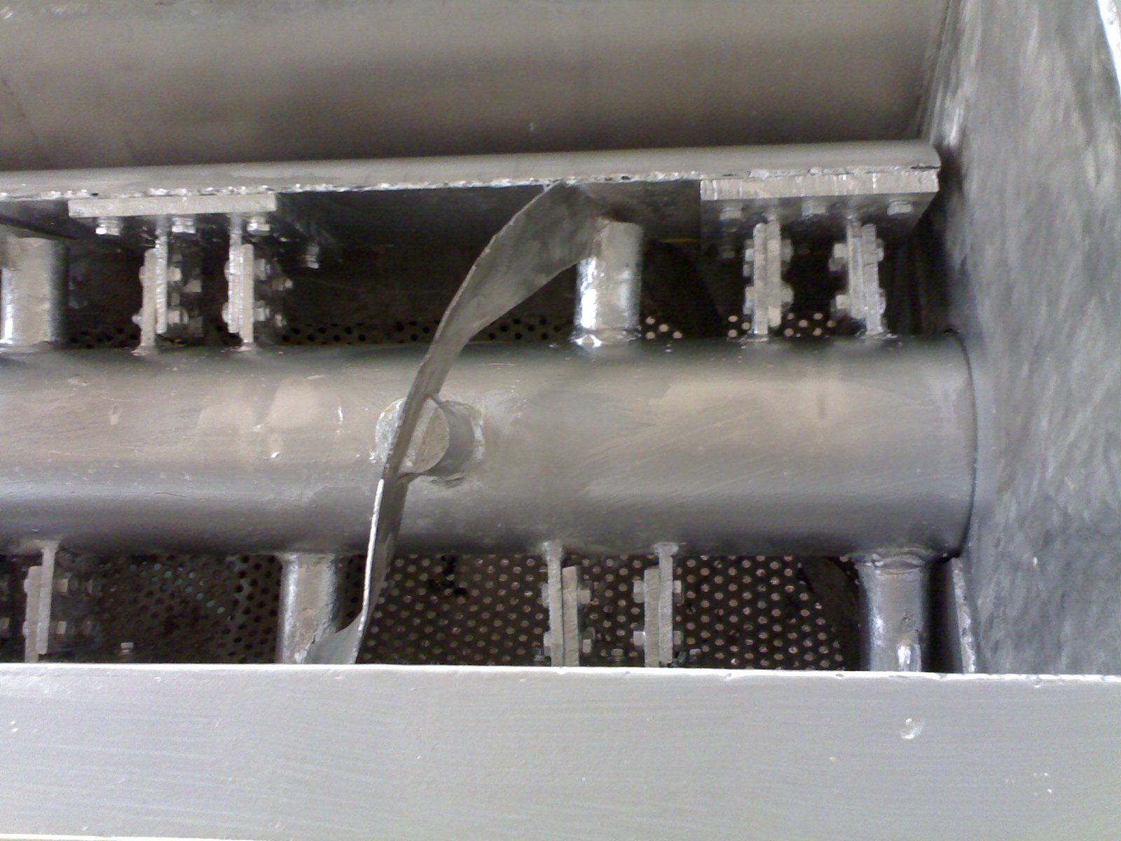 印染污泥干燥設(shè)備使用特殊的楔型攪拌傳熱槳葉,具備較大的傳熱效率和傳熱面自清潔功能。其結(jié)構(gòu)是在