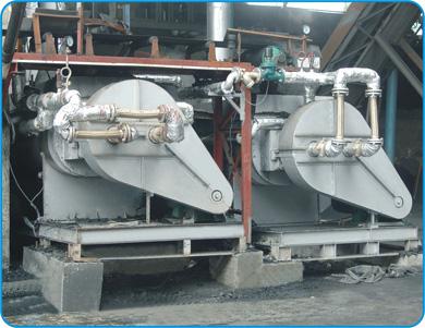 采用蒸汽或?qū)嵊妥鳠峤粨Q的熱源,熱載體(蒸汽或?qū)嵊停┑臏囟葹?80-230℃,熱載體被分別引入中空的干燥設(shè)備殼體和傳動(dòng)的軸、漿葉等所有與污泥接觸進(jìn)行熱交換的加熱金屬表面。