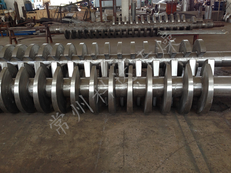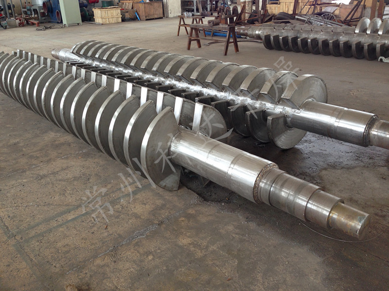 空心軸上密集排列著楔型中空槳葉,熱介質(zhì)蒸汽由空心軸流由槳葉,單位有效容積內(nèi)傳熱面積很高。傳熱介質(zhì)通過旋轉(zhuǎn)接頭,流由殼體夾套及空心攪拌軸,空心攪拌軸依據(jù)熱介質(zhì)的類型而具備區(qū)別的內(nèi)部結(jié)構(gòu),以保證最佳的傳熱效果。