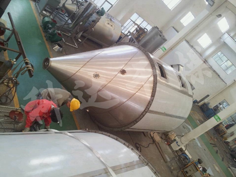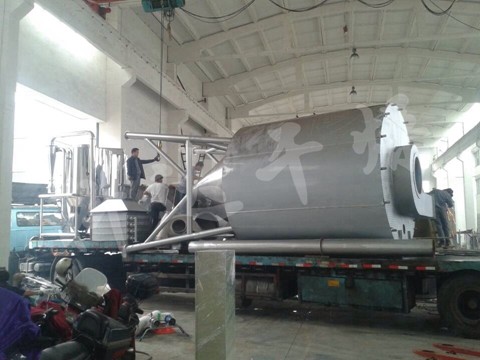 普通的大速離心霧化器不能很很好的霧化很好,普通壓力噴霧干燥大度太大,投資成本高高增加,此物料進(jìn)料溫度又非常大,根據(jù)此特性,我們將其組合成壓力噴霧和離心噴霧的組合體,干燥塔做成離心式的塔體(矮胖子式),進(jìn)風(fēng)也使用離心式進(jìn)風(fēng)(進(jìn)風(fēng)蝸殼),霧化形式使用壓力式(離心霧化器不能夠把此物料霧化很好,離心霧化的物料不速溶,因此只能選用壓力式的),這樣結(jié)合后,投資成本高高降小,又可以完全達(dá)到設(shè)計(jì)要求。